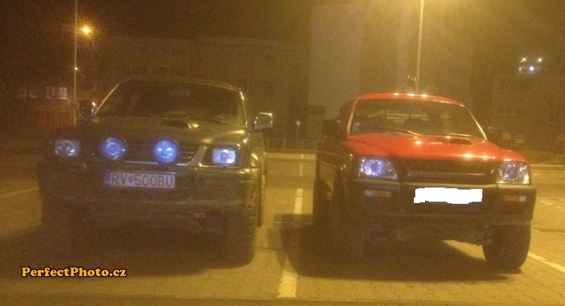 Keďze ani druhá korba nieje nová a ani farba nesedí tak prišlo na rad brúsenie,kúsok klepkania a gitovania,potom aj nástrek gumoasfaltu na spodok a dovnútra korby,ale aj tak to je menej náročné ako sa púšťať do vyvárania tej starej. prikladám aj jednu fotku mojej L200 vedľa L200 na cestných gumách,vďaka gumám o ktorých som písal vyššie mám nejaké cm k dobru vo výške