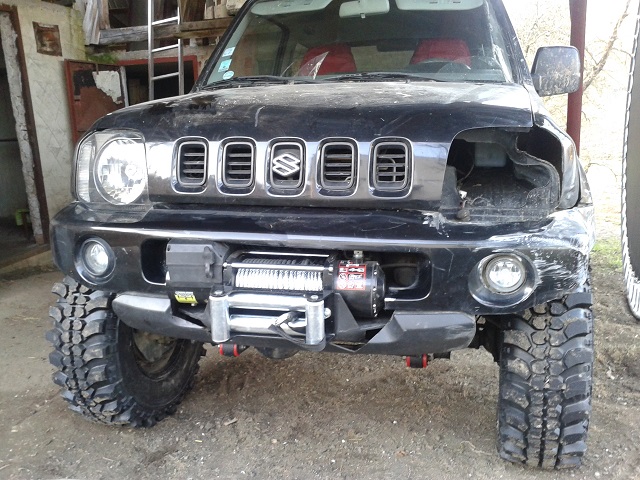 Zdravim vsetkych offakov.Po dhsom case sa treba troska pochvalit.Pribudol doma Jimny.r.v.99, 83000km,uplne bez hrdze v top stave.Troska podrastol,pribudol navijak,pneu T3 235-70-15 . Samozrejme vsetko od CB-one Prievidza. Nove ramena,domaca vyroba,v predu podlozky 10cm,vzadu struny s.felicia. Caka ma este vela uprav a casu je malo.Tak niake foto. :-D